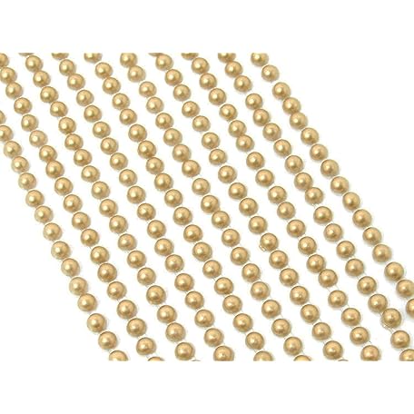 500 x Self Adhesive Pearls Gems 3mm Mini Flat Backed Round Pearls Beads Strips Embellishments (Gold)
