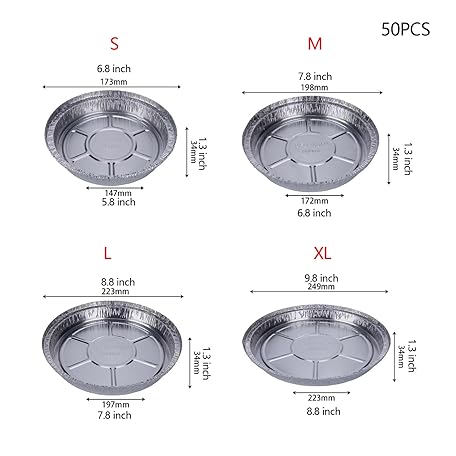 50pcs 6/7/8/9inch Tin Foil Dishes Air Fryer Tin Foil Bowl Round Baking Pan Tin Foil Box Tin Foil Oven Household Disposable Aluminum Foil Tin Foil Tray for Baking Cooking (Silver,For 6-inch 3-5L fryer)