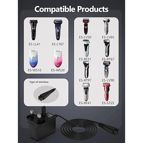 Thông tin sản phẩm 5.4V Shaver Charger Compatible with Panasonic,6.75W AC Adapter Charger Power Supply Cord, Razor Shaver ES‑LV65,ES‑LV95 ES-LV97, ES-LA63, ES-LA93, RE7-51, RE7-59, RE740, RE768,UK Plug
