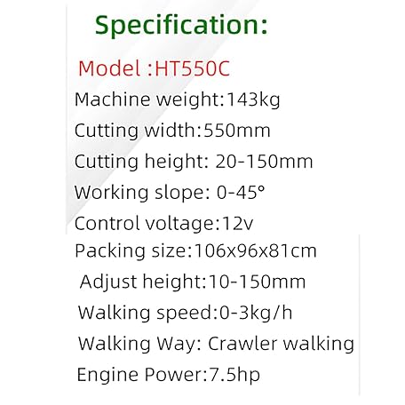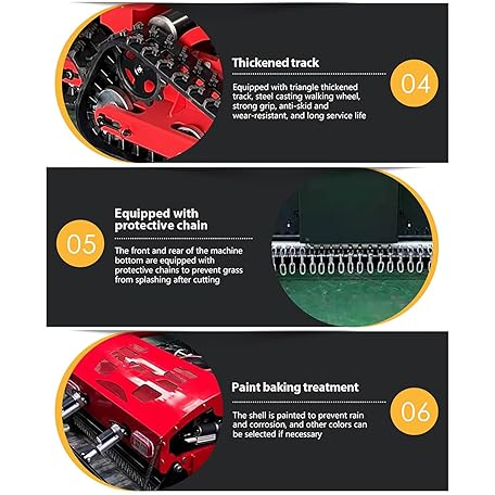 Thông tin sản phẩm 550mm Crawler Remote Control Lawn Mower With Snow Shovel, Mower Remote Controlled 45° Slope Capability, Cutting Deck Adjustable, 7.5hp Engine, Gas-Electric Self Charging Hybrid
