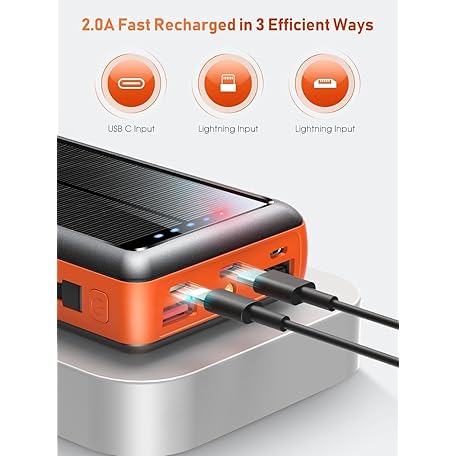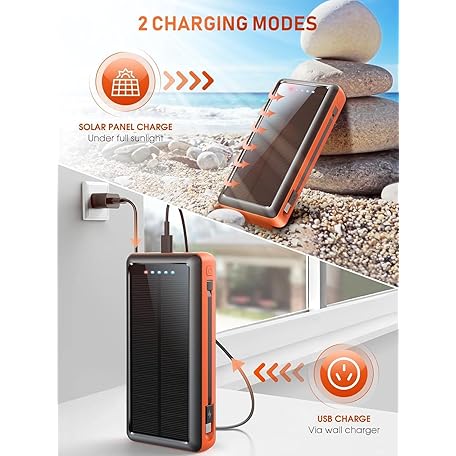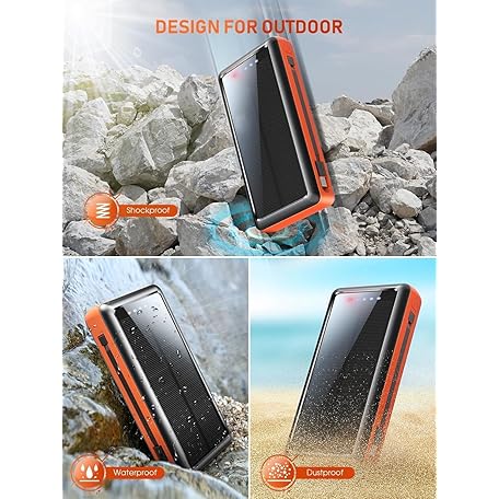 Thông tin sản phẩm 56800mAh 65W Portable Power Bank Battery Pack, 7 Charging Ports USB-C Fast Charging Phone Charger, Solar Power Bank with LED Display&Flashlight, for iphone/android