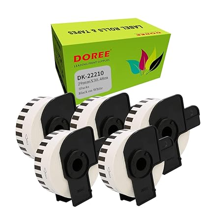 5×DOREE DK-22210 DK22210 29mm x 30.48m Compatible Continuous Paper Label Tape for Brother P-Touch QL-1110NWB QL-1100 QL-1060N QL-1050 QL-500 QL-500A QL-500BW QL-570 QL-580 QL-700 (5 Packs)