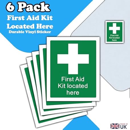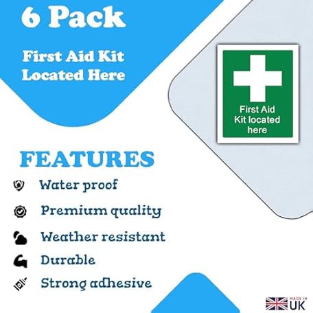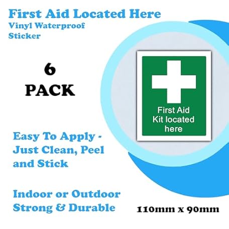 Sản phẩm 6-Pack Premium First Aid kit Located here Health & Safety Vinyl Stickers, 110mm x 90mm - Easy to Apply & Durable for Medical Safety Sign đang được bán với giá ưu đãi là $7.1613 tại nước Anh.