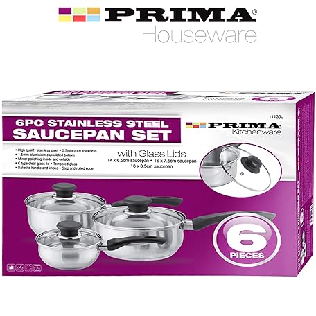 Sản phẩm 6 Pcs Stainless Steel Saucepan Essential Cookware Set with Glass Lids & Sturdy Handles Pot Prima Kitchen Cook Home Chef Cooking Sauce Pan Housewarming Gifts UK Free P&P, Silver đang được bán với giá ưu đãi là $26.8031 tại nước Anh.
