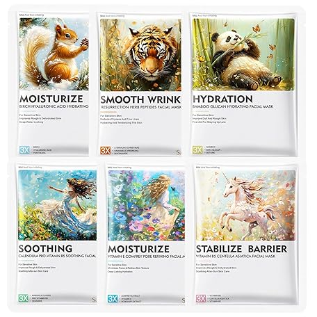 Sản phẩm 6-Piece Face Masks– Hydrating Sheet Masks with Birch, Vitamin E, Centella & Madecassoside-25ml Essence for All Skin Types-Pamper Gifts for Women, Men, Teen Girls, Soothing, Brightening Skin đang được bán với giá ưu đãi là $8.7636 tại nước Anh.