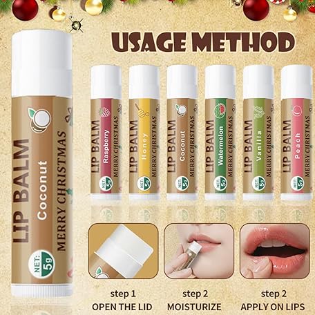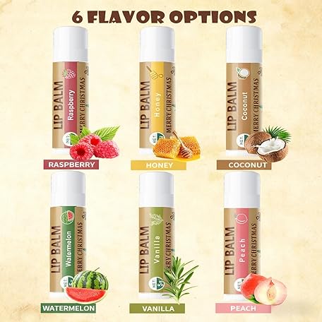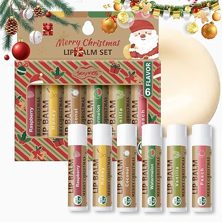 Sản phẩm 6 Pieces Christmas Lip Balm Gift Set, Lip Care Gifts, Nourishing Lip B/alm, Long Lasting Moisturizer, L/ip Balm for Repairing Dry & Chapped Lips, Coconut, Strawberry, Honey, Watermelon, Vanilla, Peach đang được bán với giá ưu đãi là $14.5951 tại nước Anh.