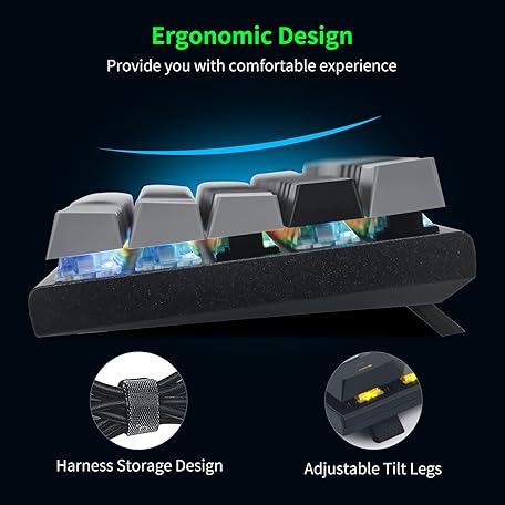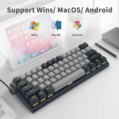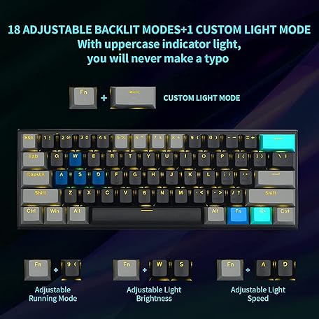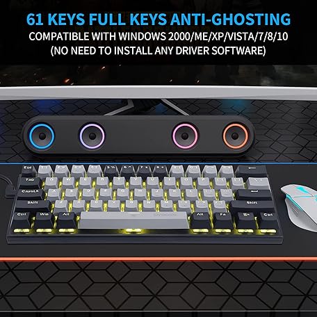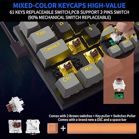 Thông tin sản phẩm 60% Mini Mechanical Gaming Keyboard: E-Yooso Small 61 Keys USB PC Keyboard with Cable Illuminated Brown Switch, Black and Grey (QWERTY, US Layout)