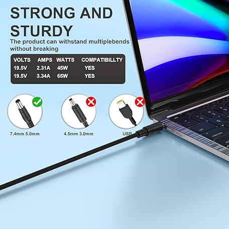 Thông tin sản phẩm 65W Laptop Charger, 19.5V 3.34A Power Adapter for Dell Latitude 5480 5490 E5470 E5440 E7440 E7270 E5430 E6440 E7250 E7240 E7470 Inspiron N5110 3520 3420 7490 LA65NS2-01 HA65NS5-00 Power Supply Cord