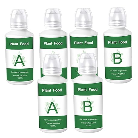 6Pcs Hydroponic Plant Food A and B Nutrients Liquid Fertilizer for Vegetables, Fruits, Indoor Garden, Hydro Grow System and Agricultural Planting