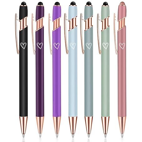 7 Pack 2 in 1 Ballpoint Pen with Stylus Tip, Metal Stylus Pens for Touch Screens,1.0 mm Black Ink Retractable Ballpoint Smooth Writing Pens for work colleagues (Multicolor)