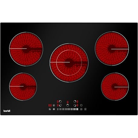 77cm 8200W 5 Zone Ceramic Burner Electric Hob - Black Glass Touch Control Flush