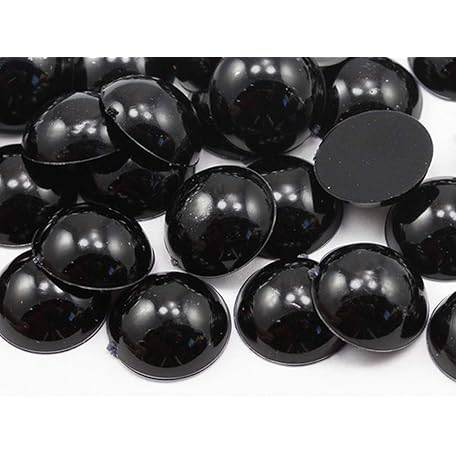 7mm Jet Black .JT Flat Back Acrylic Round Cabochons Plastic Pearl Gems For Jewelry Making Costume Making Cosplay Jewels Embelishments - 100 Pieces