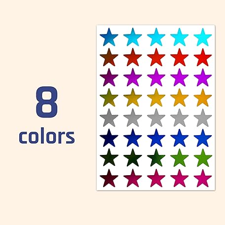Thông tin sản phẩm 8 Colours, 1000 Pack, Foil Star Metallic Stickers, 15mm