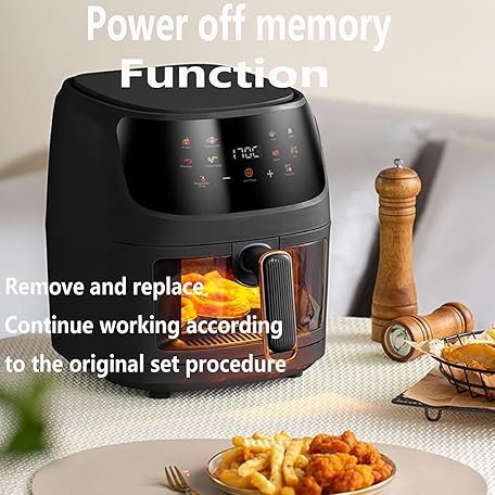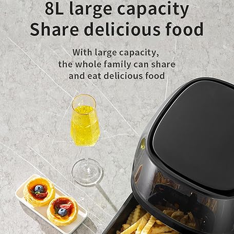 Thông tin sản phẩm 8 Litre Glass Air Fryer, Air Fryer Oven, With Window, 1400 Watt, Smart Compact, With Led Digital Touch Screen, Easy To Clean Non-Stick Pan, Customisable Temperature/Time, For 2-3 People, Black