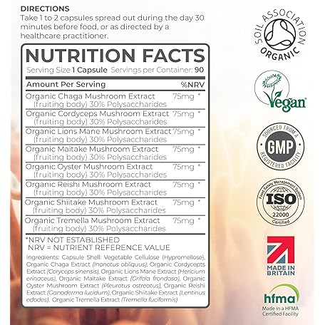 Sản phẩm 8 Mushroom Complex Organic Extracts 90ct đang được bán với giá ưu đãi là $27.1846 tại nước Anh.
