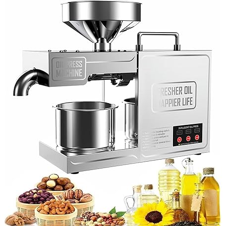 820W Oil Press Machine, Commercial Stainless Steel Cold Hot Press for Home Kitchen