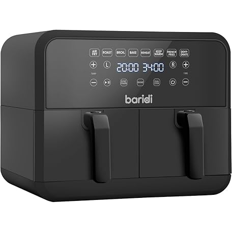 8L Dual Zone Air Fryer Oven - 8-in1 Easy Clean Black Worktop Cooker 2x 4L Basket