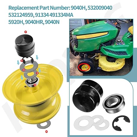 Thông tin sản phẩm 9040H Front Wheel Bushing to Bearing Conversion Kit Compatible with Craftsman, Poulan, Husqvarna, Jonsered, Murray Lawn Mower Fits 532009040, 532124959, 91334, 491334MA, 5920H, 9040HR, 9040N