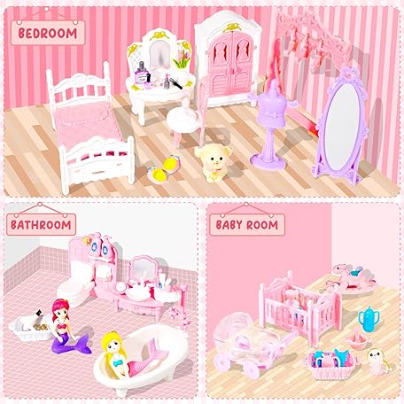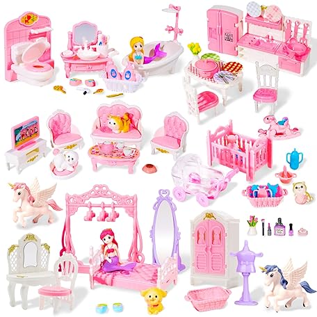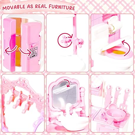 Sản phẩm 92 Pcs Miniature Furniture Set Accessories 1:12 Scale Mini Furniture Plastic Bedroom Living Room Bathroom Kitchen Kit Small Pink House for Birthday Gift đang được bán với giá ưu đãi là $44.5156 tại nước Anh.