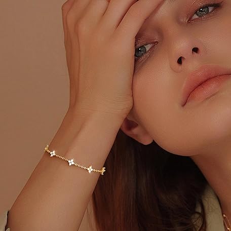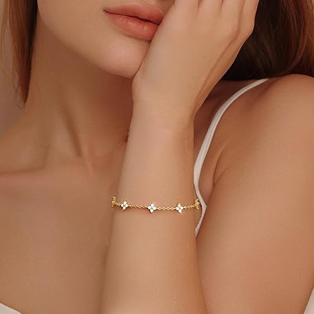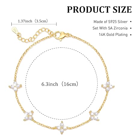 Sản phẩm 925 Silver Bracelets for Womens 14K Gold Plated Four Leaf Clover Bracelet Tennis Bracelets for Women with Cubic Zircon Pearl Bracelet Hand Chain,Womens Jewellery Birthday Gifts for Women Gifts for Her đang được bán với giá ưu đãi là $11.4668 tại nước Anh.