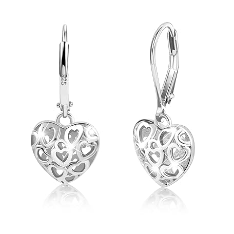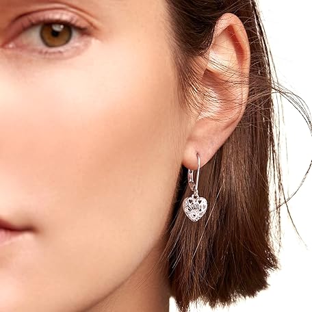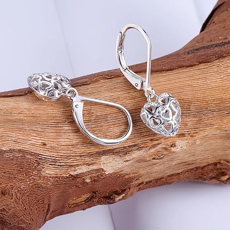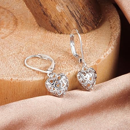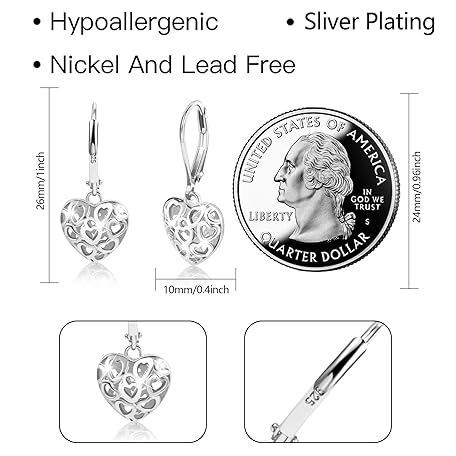 Thông tin sản phẩm 925 Sterling Silver Heart Drop Earrings for Women, ASH'S CHOICE Small Cartilage Sterling Silver Huggie Earring, Silver Hoop Earrings with Hollow Heart Drop French Hook Dangle Hoop Earrings for Women