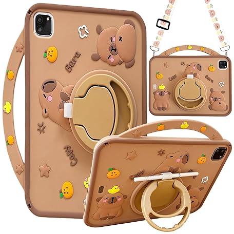 A-BEAUTY Kids Case Compatible with iPad Air 11 Inch M3/M2 (2025/2024), Air 5th/4th Gen 10.9" 2022/2020, Shockproof Capybara Cover with Pencil Holder, Handle Stand, Shoulder Strap