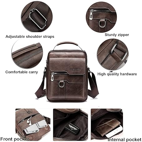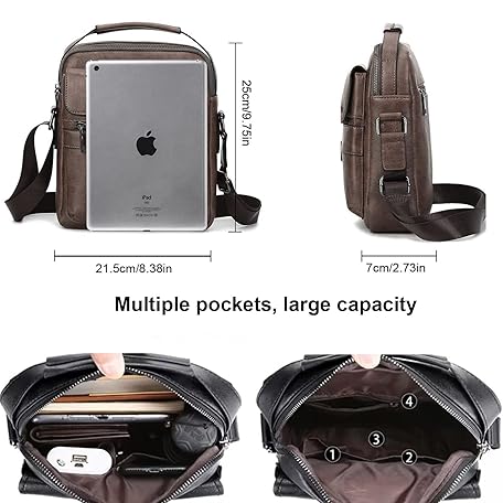 Sản phẩm A-QMZL Men's Shoulder Bag PU Leather Man Bags for Men Shoulder Crossbody Messenger Bag Business Travel Pack Satchel Side Bag Casual Handbag Sling Bags for Men Daily Use (Brown) đang được bán với giá ưu đãi là $27.9803 tại nước Anh.