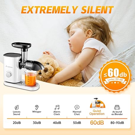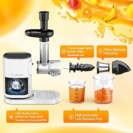 Thông tin sản phẩm AAOBOSI cold press juicer machines, Slow Masticating Juicer for Fruit and Vegetable Delicate Crushing without Filtering, juice maker with Quiet Motor and Reverse Function, White
