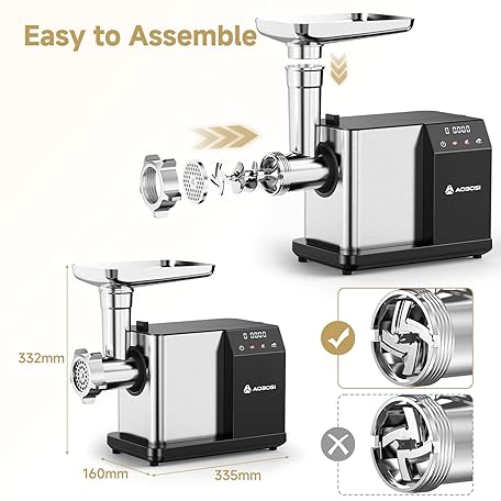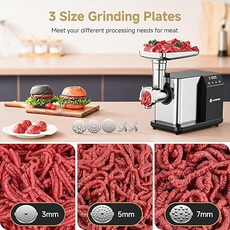 Thông tin sản phẩm AAOBOSI Electric Meat Grinder [3000W MAX], Meat Mincer with LCD Display & Reverse Function, Sausage Maker with 3 Different Cutting Plates & Kibbe Attachment for Home Use