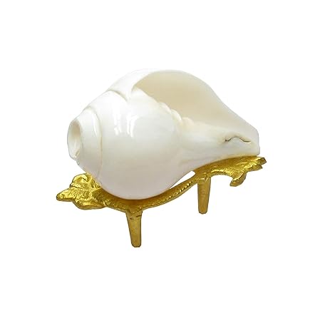 Aashita Creations Blowing Shankh Original Natural Conch Shell with Stand - 3.5 Inch Small