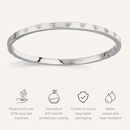 Thông tin sản phẩm Abbott Lyon Aqua Crystal Heart Bangle | Women's Bracelet with Cubic Zirconia Stones, Anti-Tarnish Coating | Elegant Jewellery for Everyday Wear, Water-Resistant