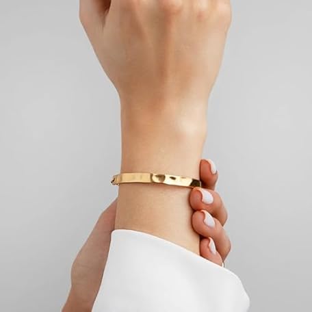 Sản phẩm Abbott Lyon Gold Hammered Bangle - Women's Bracelet 18k Gold Plated Stainless Steel & Brass - Luxe Jewellery for Everyday Wear, Water-Resistant, Anti-Tarnish Coating, Adjustable Toggle Closure đang được bán với giá ưu đãi là $80.5074 tại nước Anh.