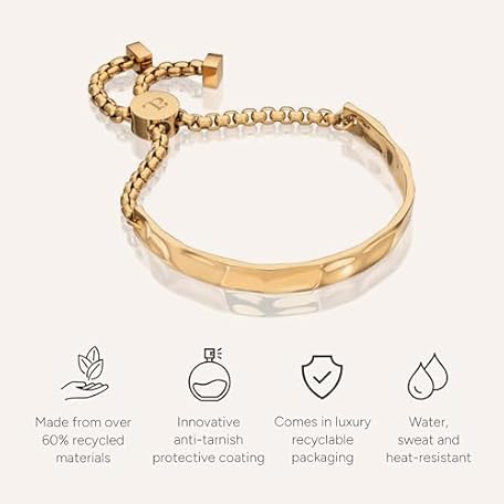 Thông tin sản phẩm Abbott Lyon Gold Hammered Bangle - Women's Bracelet 18k Gold Plated Stainless Steel & Brass - Luxe Jewellery for Everyday Wear, Water-Resistant, Anti-Tarnish Coating, Adjustable Toggle Closure