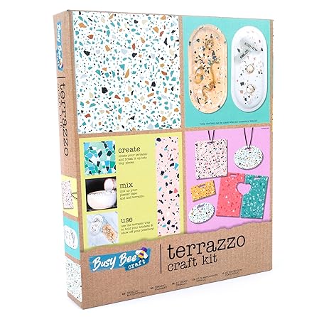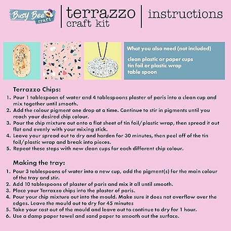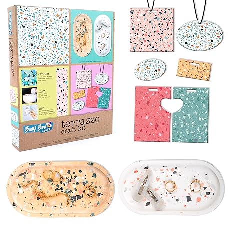 Thông tin sản phẩm abeec Terrazzo Craft Kit for Complete Beginner-Friendly Set for Creating One Tray or Jewellery Piece – Includes Moulds, Dyes, Plaster, Tools, and Instructions for Creative Fun