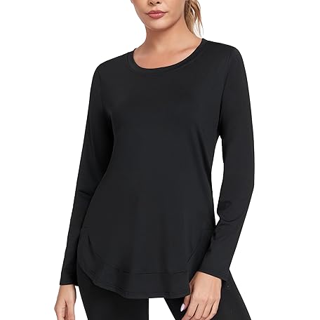 Absttith Women's Long Sleeve Workout Shirts Running Yoga Tops Athletic Sport Tee Side Split, Back 01, M