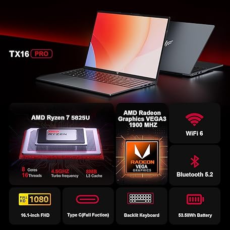 Thông tin sản phẩm ACEMAGIC 2025 Gaming Laptop Computer - 16.1'' FHD Display Laptop with Ryzen 7 5825U Processor (Up to 4.5 Ghz), 16GB Ram DDR4x2 512GB SSD Notebook with Backlit Keyboard, Support WiFi 6