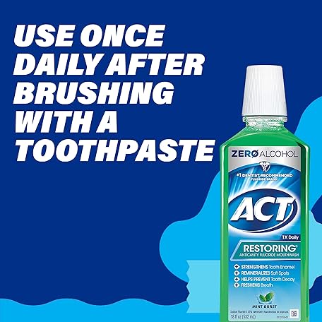 Thương hiệu ACT là cái tên nổi tiếng được rất nhiều khách hàng trên thế giới chọn lựa. Với kiểu dáng đẹp mắt, sang trọng, sản phẩm ACT Restoring Anticavity Fluoride Mint Burst Mouthwash 18 Ounce Helps Freshen Breath & Strengthen Tooth Enamel to Prevent Tooth Decay & Cavities là sự lựa chọn hoàn hảo nếu bạn đang tìm mua một món cho riêng mình.