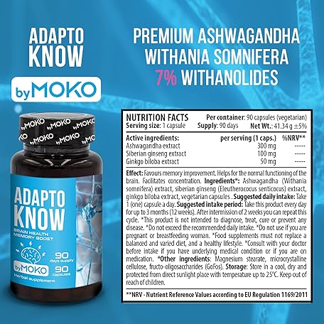 Sản phẩm AdaptoKnow Ashwagandha Siberian Ginseng and Ginkgo biloba Supplement - Brain Booster Supplement for Cognitive Function, Memory Health, Concentration, Stress and Anxiety 90 Days Supply đang được bán với giá ưu đãi là $33.0815 tại nước Anh.