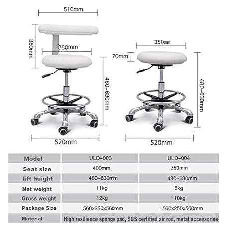 Thông tin sản phẩm Adjustable Dental Stool for Dentist Chair, 360° Rotating PU Leather Saddle Seat with Armrests, Ergonomic Medical Assistant Chair for Salon & Clinic Use