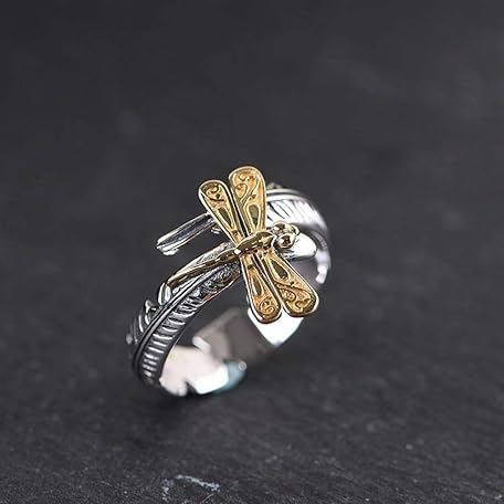 Adjustable Ring For Women - Fashion Yellow Dragonfly Opening S925 Rings,Adjustable Open Ring,Fashion Wedding Band Engagement Jewelry,For Women Party Ring Jewelry,Gift For Women And Girls