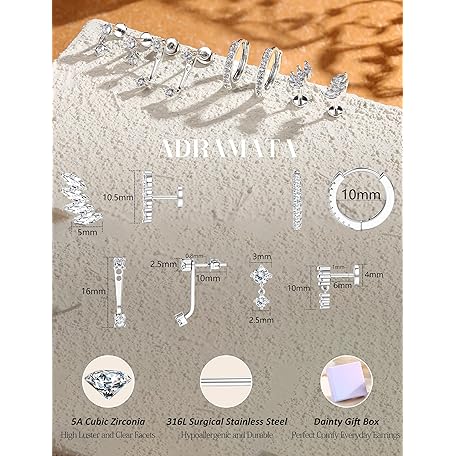 Thương hiệu ADRAMATA là cái tên nổi tiếng được rất nhiều khách hàng trên thế giới chọn lựa. Với kiểu dáng đẹp mắt, sang trọng, sản phẩm Adramata 4 Pairs Stud Earrings for Women Hypoallergenic Huggie Hoop Earrings Surgical Steel Earrings Tragus Helix Piercing Jewellery Cartilage Earrings Gold Silver Earrings Set for Multiple Piercings là sự lựa chọn hoàn hảo nếu bạn đang tìm mua một món cho riêng mình.
