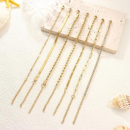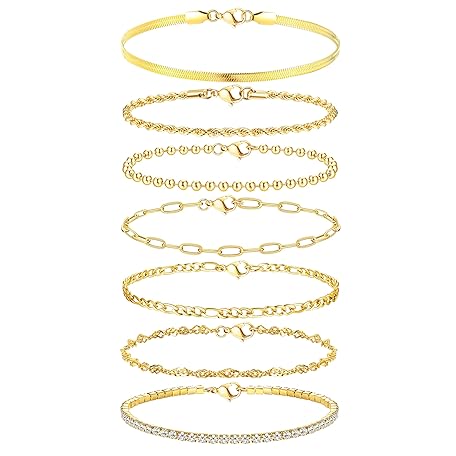 Sản phẩm ADRAMATA 7Pcs Chain Bracelets for Women 14K Gold Plated Stacking Bracelets Twist Figaro Herringbone Chain Bracelets Adjustable CZ Link Charm Bracelets Set Silver Gold Bracelets for Women Girls đang được bán với giá ưu đãi là $14.2681 tại nước Anh.