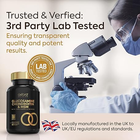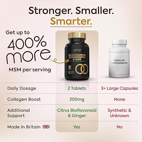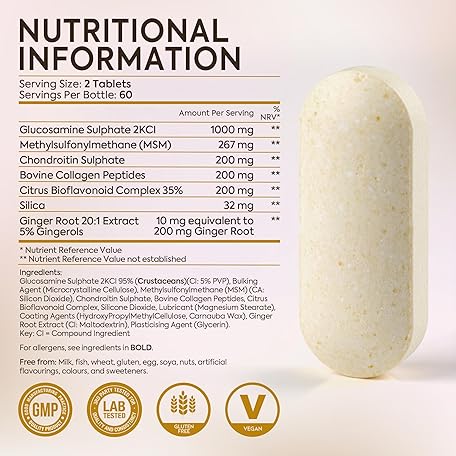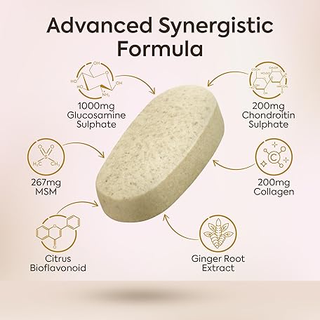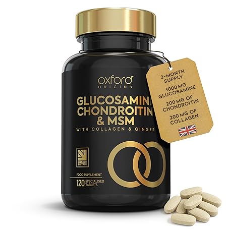 Thông tin sản phẩm Advanced Glucosamine and Chondroitin High Strength Tablets with MSM | Made in The UK | Glucosamine Sulphate with Chondriotin, MSM Powder, Collagen, Citrus Bioflavonoid and Ginger Root | 120 Tablets