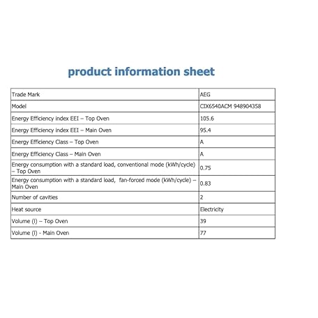 Thông tin sản phẩm AEG 5000 Series SurroundCook Cooker with Induction Hob CIX6540ACM, Capacity 77/39L, Double Cavity Electric, Catalytic Self-Cleaning Oven, Grill Function, Heat Indicators, Cooling Fan, 894x600x600 mm