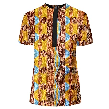 African Men Dashiki Shirt Short Sleeve Traditional Print Cotton Wax Top Summer Beach Shirts, Burgundy-1, Large