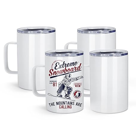 AGH 16oz Sublimation Mugs with Handle, 304 Stainless Steel Sublimation Coffee Mug with Splash-proof Lid, Vacuum Insulated Travel Beer Tea Mug Compatible with Cricut Mug Press, 4 Pack