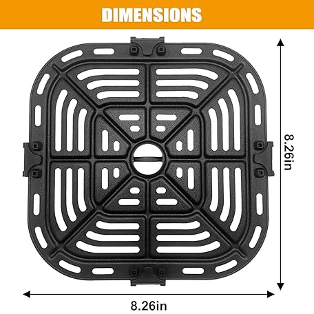 Thông tin sản phẩm Air Fryer Grill Pan for COSORI Air Fryer Pro LE 5 Qt, Non-Stick 8.26’’*8.26’’Square Air Fryer Rack Replacement Parts Accessories Grill Plate Crisper Plate Tray with Rubber Bumpers, Dishwasher Safe
