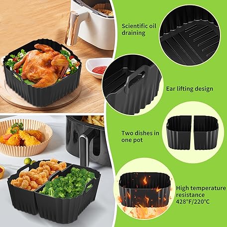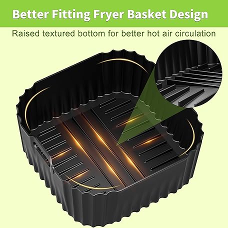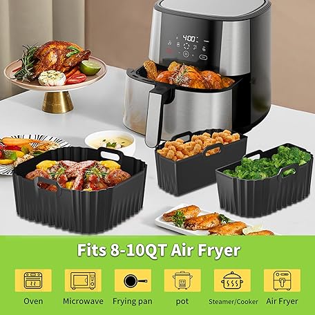 Thông tin sản phẩm Air Fryer Silicone Liners Square for Chefman 8QT Air Fryer, 3 Pack Reusable Silicone Pot Baking Accessories for Instant, Nuwave, Gourmia and other 8QT to 10QT Large AirFryer, 2 In 1 Liners