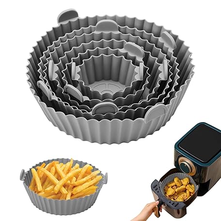 Air Fryer Trays, 6 Pieces Silicone Baking Tray Reusable Air Fryer Accessories for Air Fryer for Air Fryer Oven and Microwave, Grey