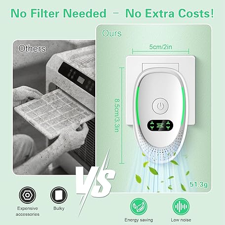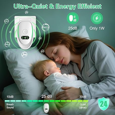 Thông tin sản phẩm Air Purifier for Bedroom Smokers, 2-Pack Plug-In Negative Ion Air Purifier, Portable Mini Ioniser for Home, Quiet Odour Remover for Pets, Toilets, Offices, Rooms